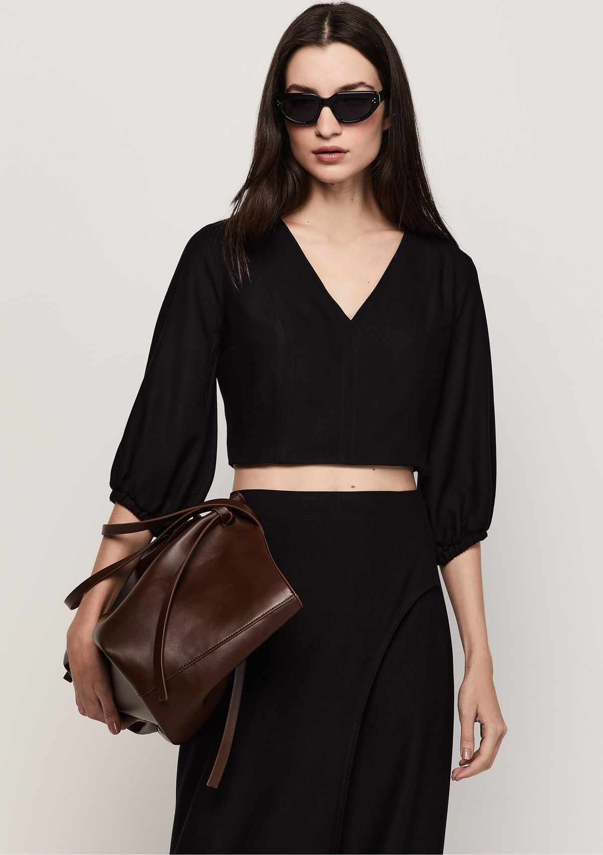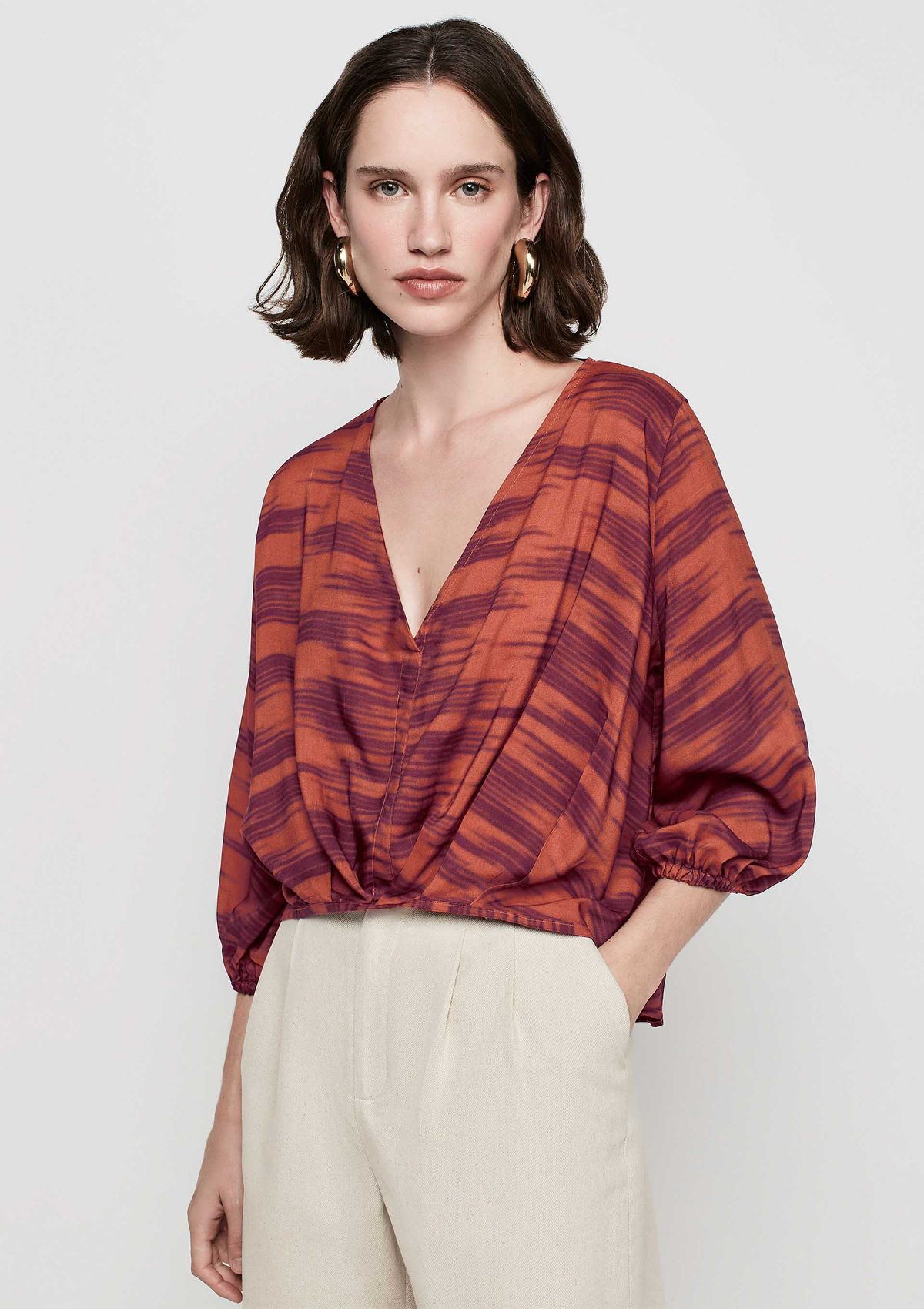 Blusa Cropped Manga Longa Em Viscose Vermelho e Vinho - Estampada