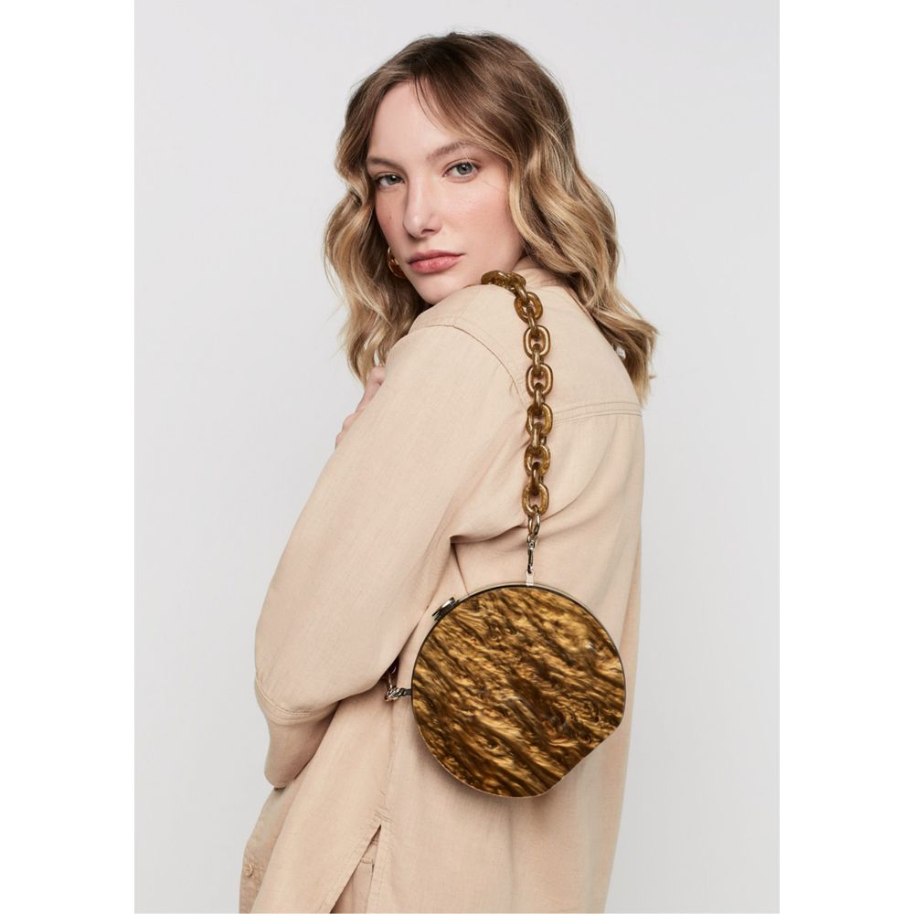 A bolsa feita em acrílico com padrão mesclado é uma verdadeira declaração de estilo e sofisticação. Com seu design moderno e elegante, esta bolsa é perfeita para adicionar um toque de glamour ao seu visual!