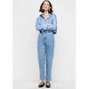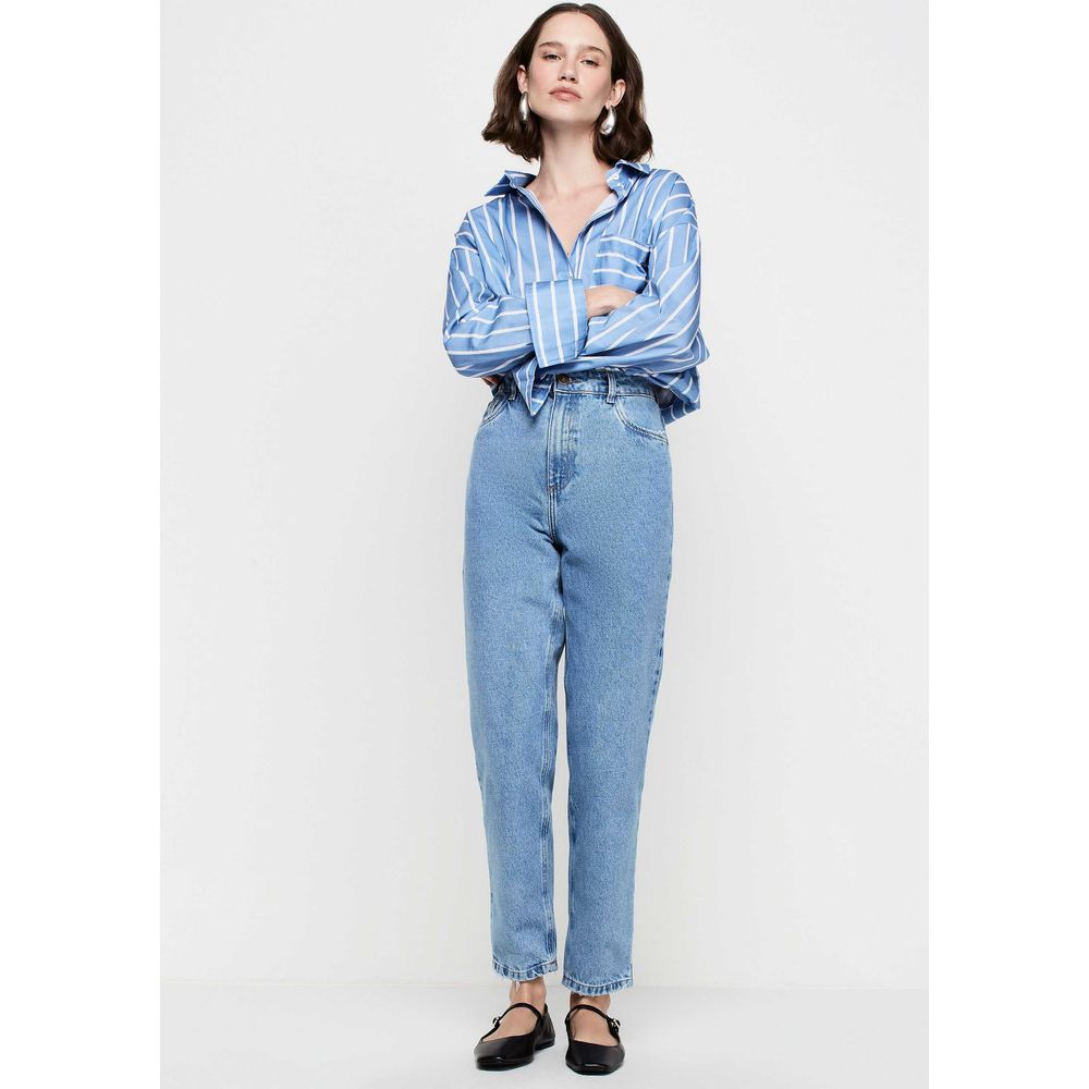 | MEDIDAS | Modelagem mom fit, inspirada nas calças usadas pelas mães nos anos 80 e 90. É confortável, tem a cintura alta, com caimento soltinho nos quadris e coxas, afunilando levemente na barra. Shape levemente mais ajustado do que mom tradicional. |