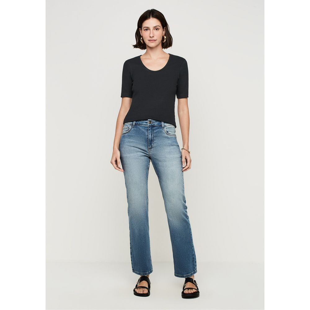 | MEDIDAS | Modelagem reta. Ajustada no quadril e a partir do joelho até a barra tem o corte reto. Possui cintura alta. |