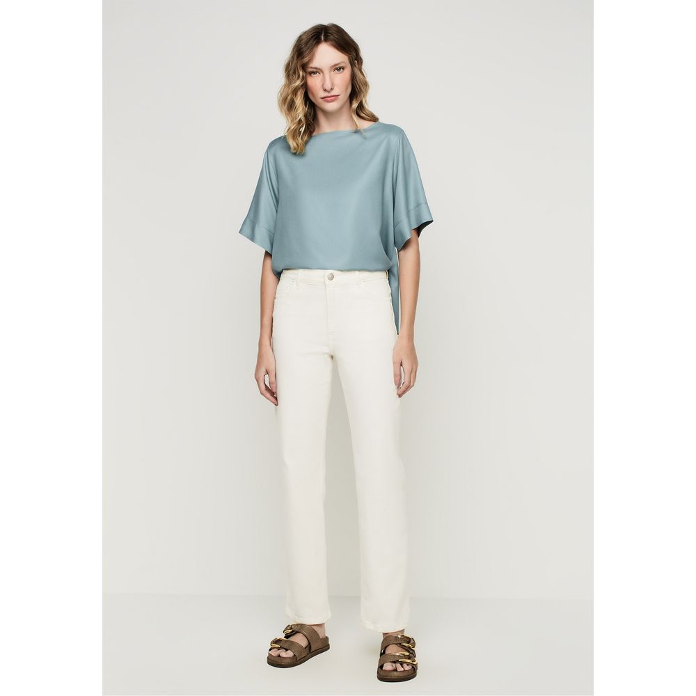 | MEDIDAS | Modelagem reta. Ajustada no quadril e a partir do joelho até a barra tem o corte reto. Possui cintura alta. |