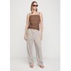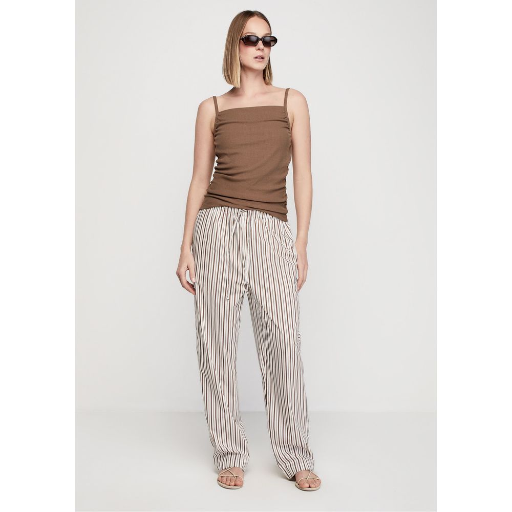 | MEDIDAS | Calça listrada reta, com bolsos laterais e elástico no cós |