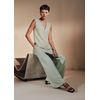 | MEDIDAS | Modelagem com a cintura alta, mix entre o corte reto e a pantalona, ampla no quadril até a barra. O comprimento pode variar de acordo com a proposta do modelo. |