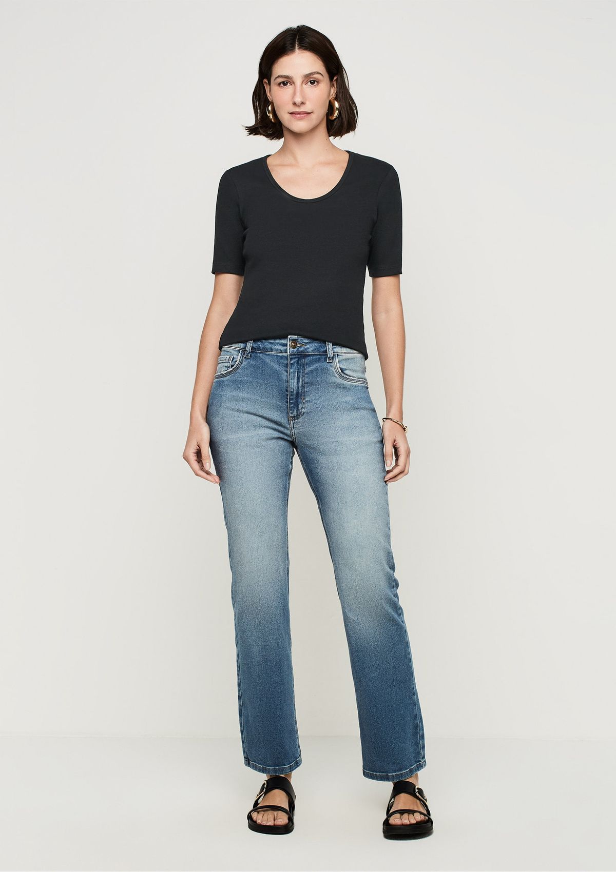 Calça Jeans Reta Cintura Alta Com Elastano - Azul
