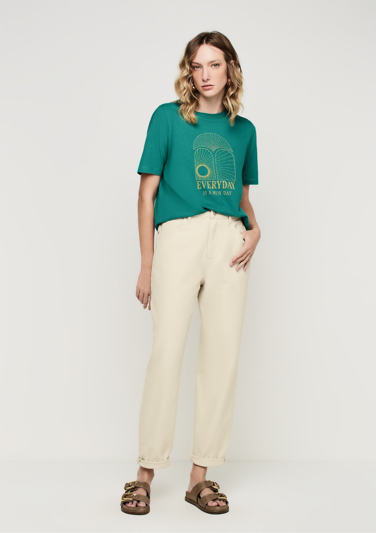 Calça Slouchy Cintura Alta Em Algodão - Bege