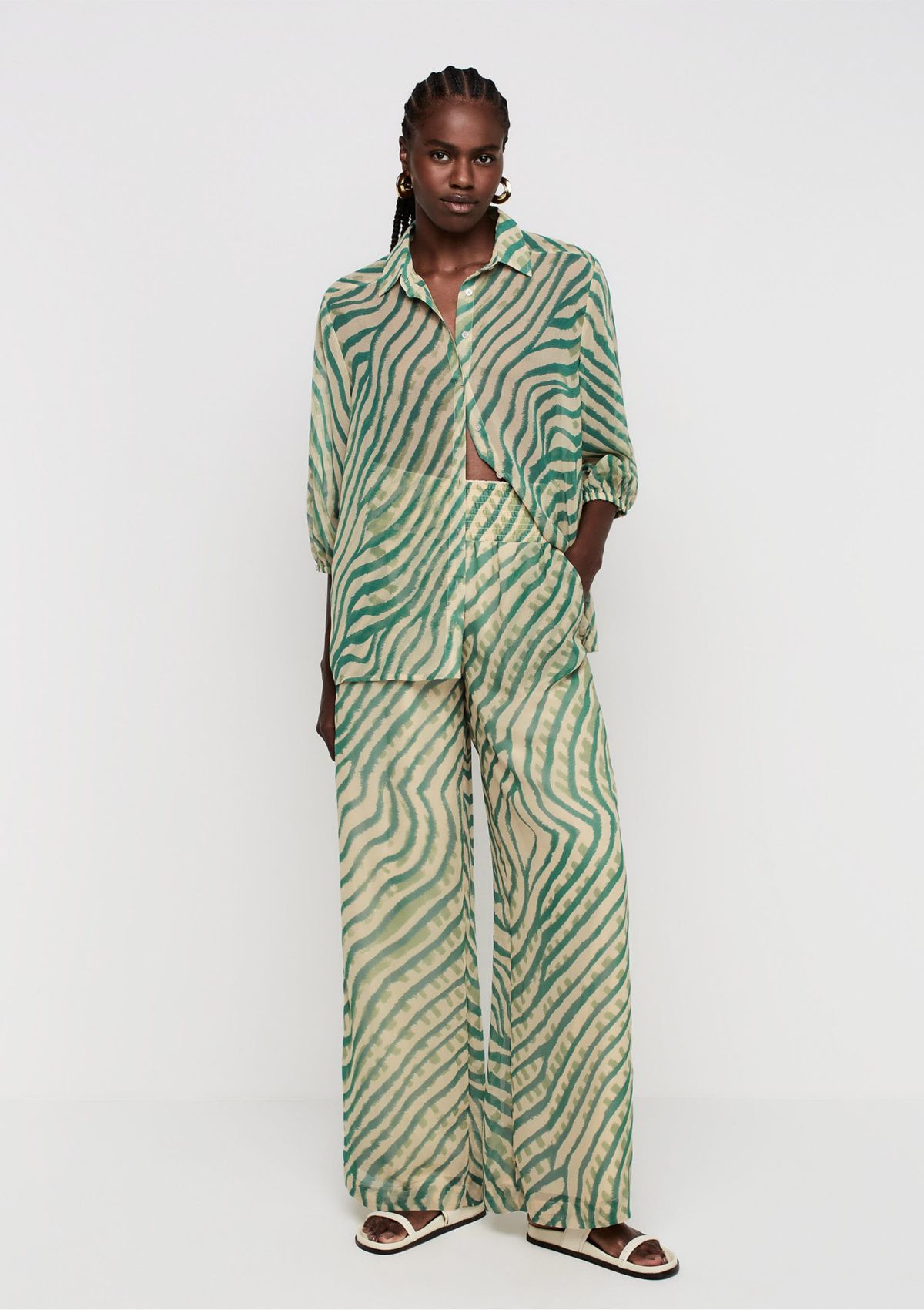 Calça Reta Em Tecido Fluido Estampada Off-White e Verde - Estampada
