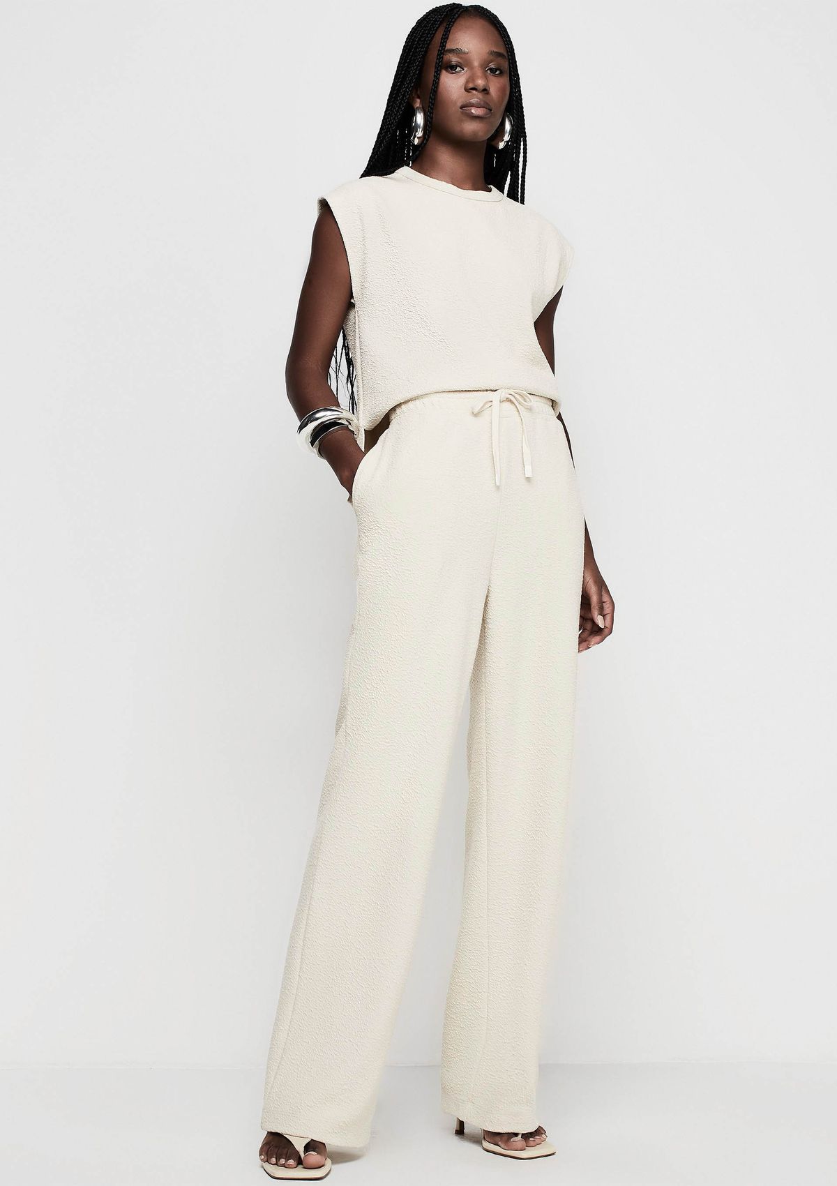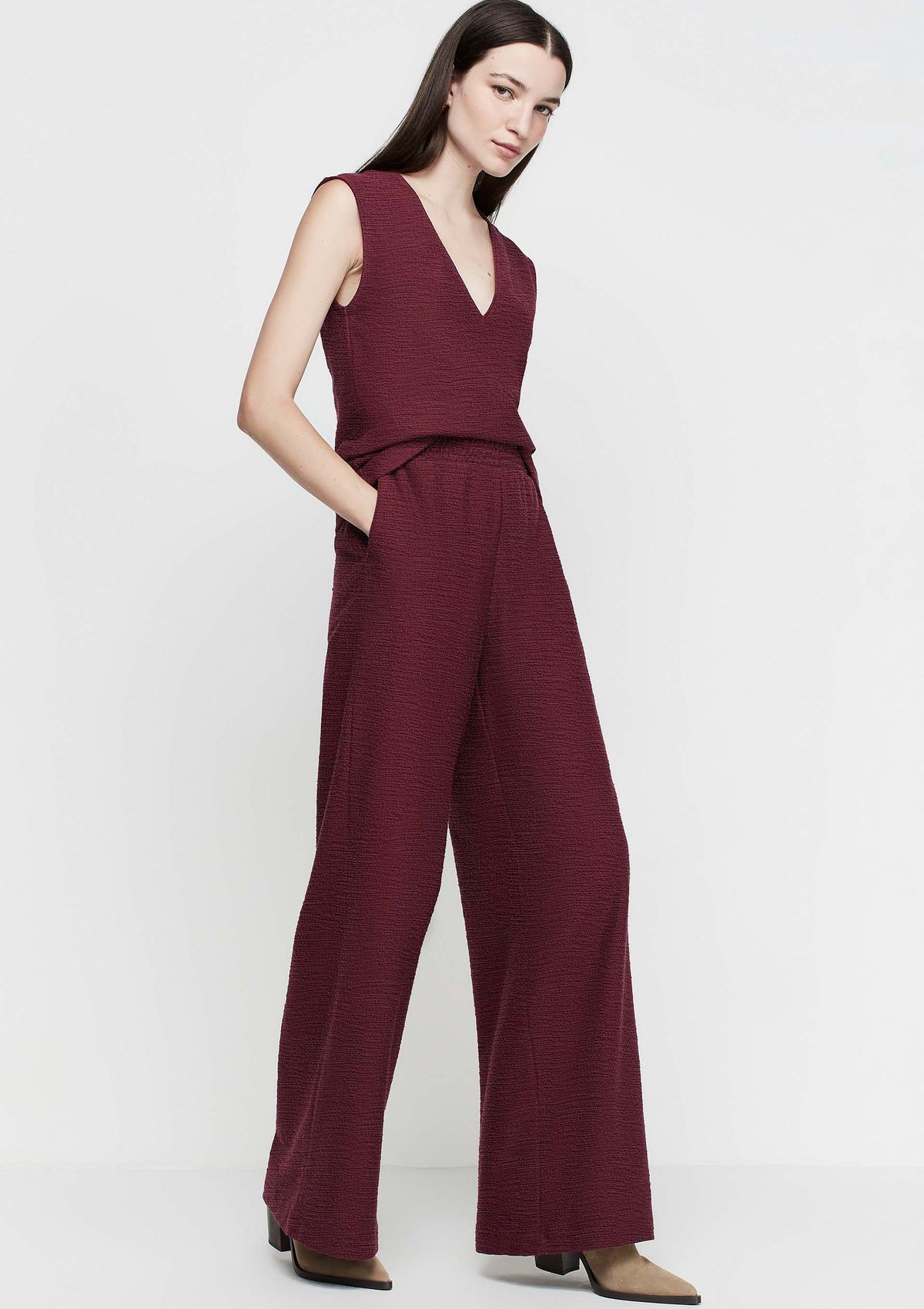 Calça Wide Leg Cintura Alta Em Malha Texturizada - Vermelho