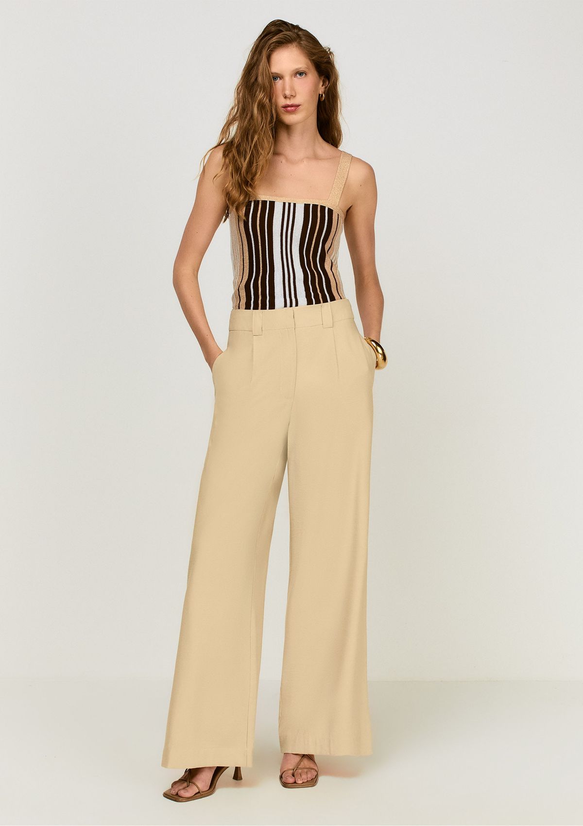Calça Wide Leg Cintura Alta Em Alfaiataria - Marrom