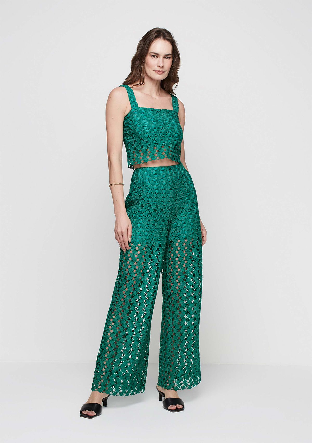 Calça Wide Leg Cintura Alta Em Guipir - Verde