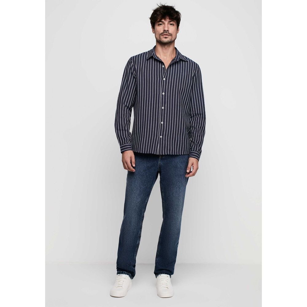 Camisa Masculina Manga Longa Regular Fit Listrada em Branco - Estampada
