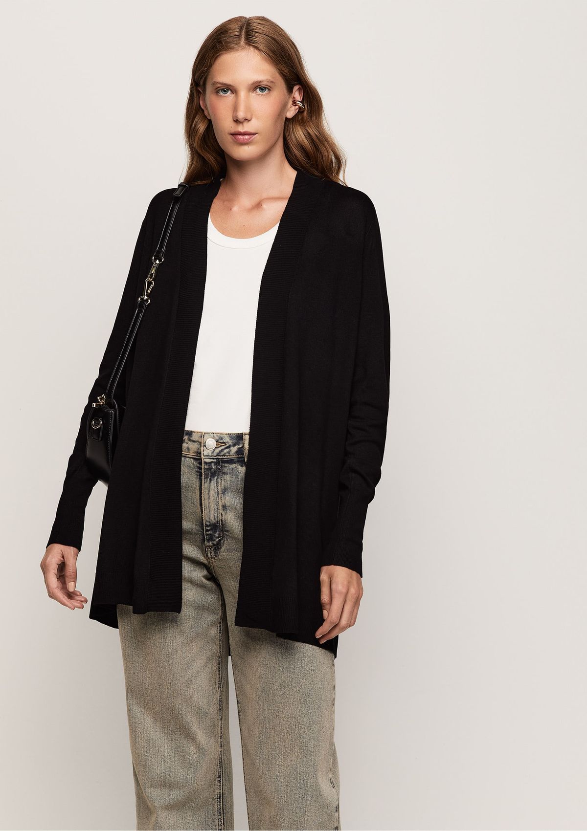 Cardigan Reto em Tricô Alongado - Preto