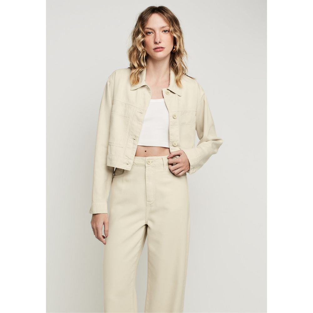 | MEDIDAS | Modegelagem jaqueta reta de sarja comprimento regular. |