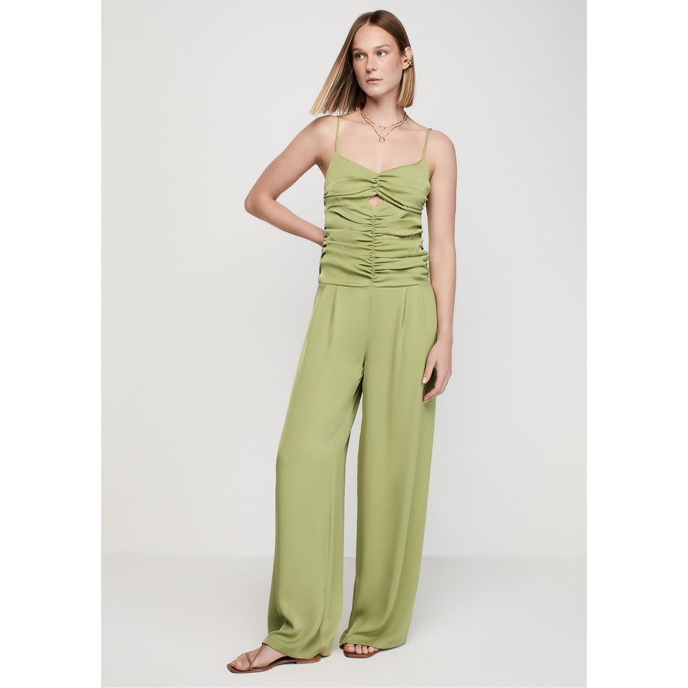 | MEDIDAS | Macacão fluido de alças finas com franzido na frente e laterais, shape de calça reto |