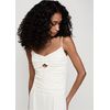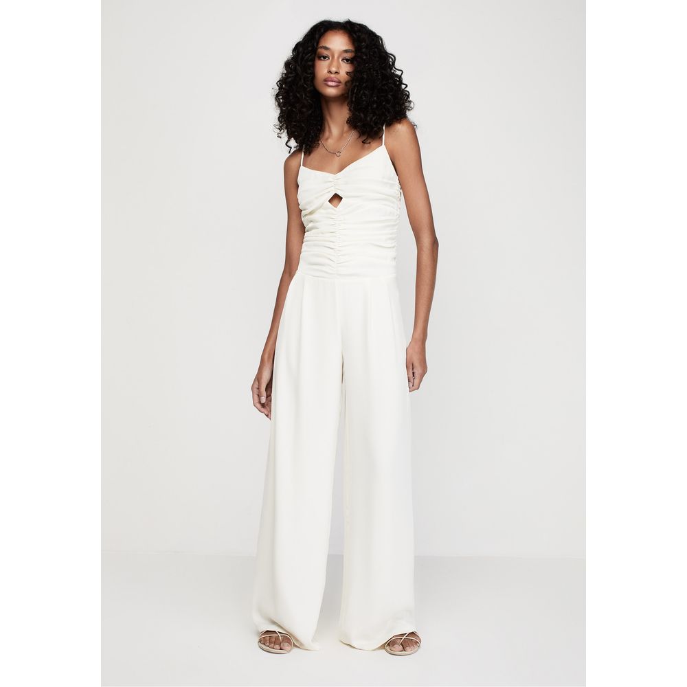 | MEDIDAS | Macacão fluido de alças finas com franzido na frente e laterais, shape de calça reto |