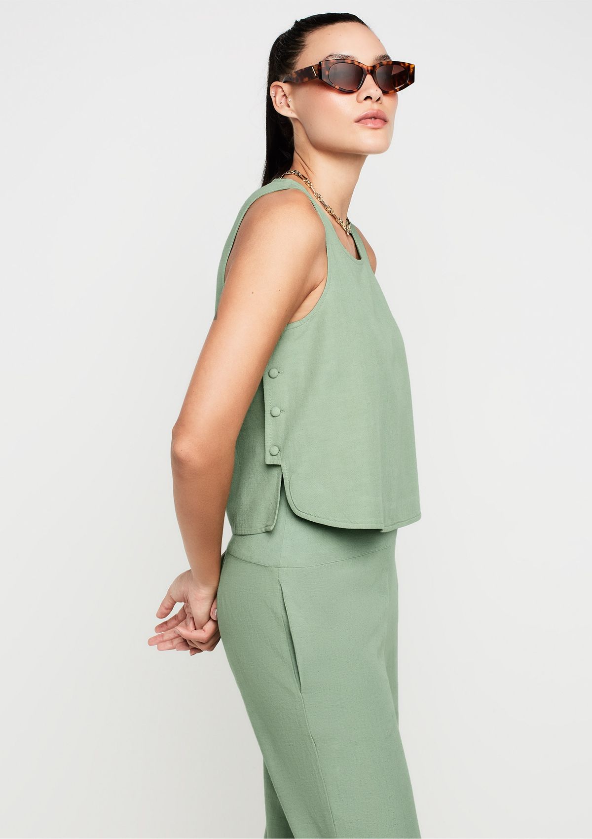 Regata Decote U Reta Com Linho - Verde