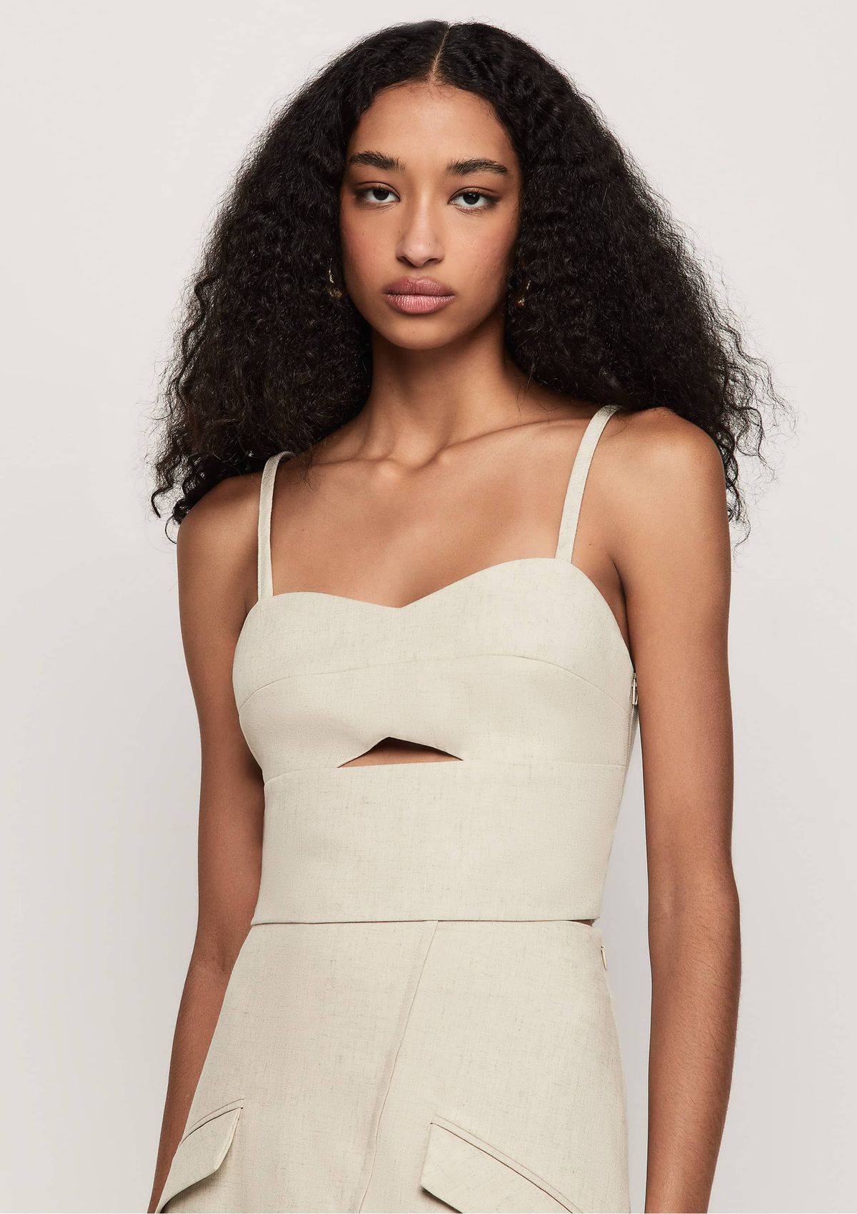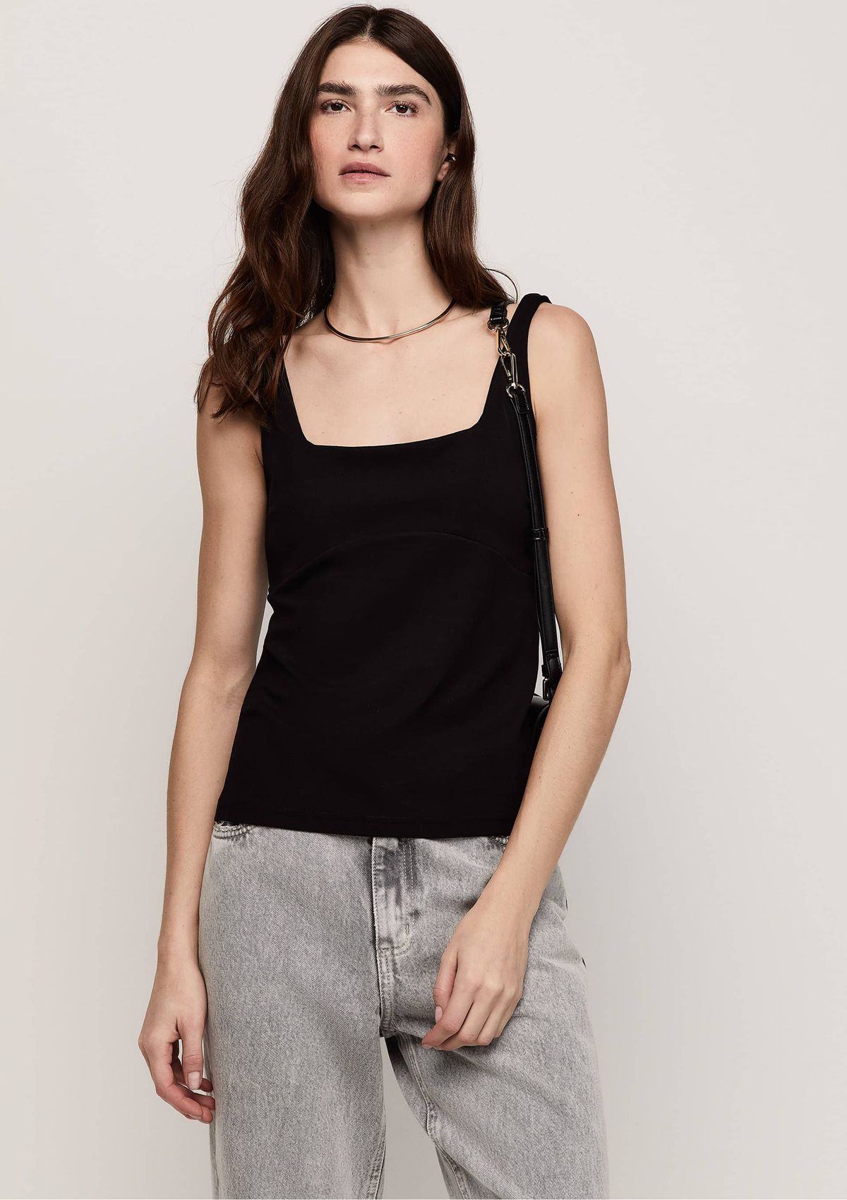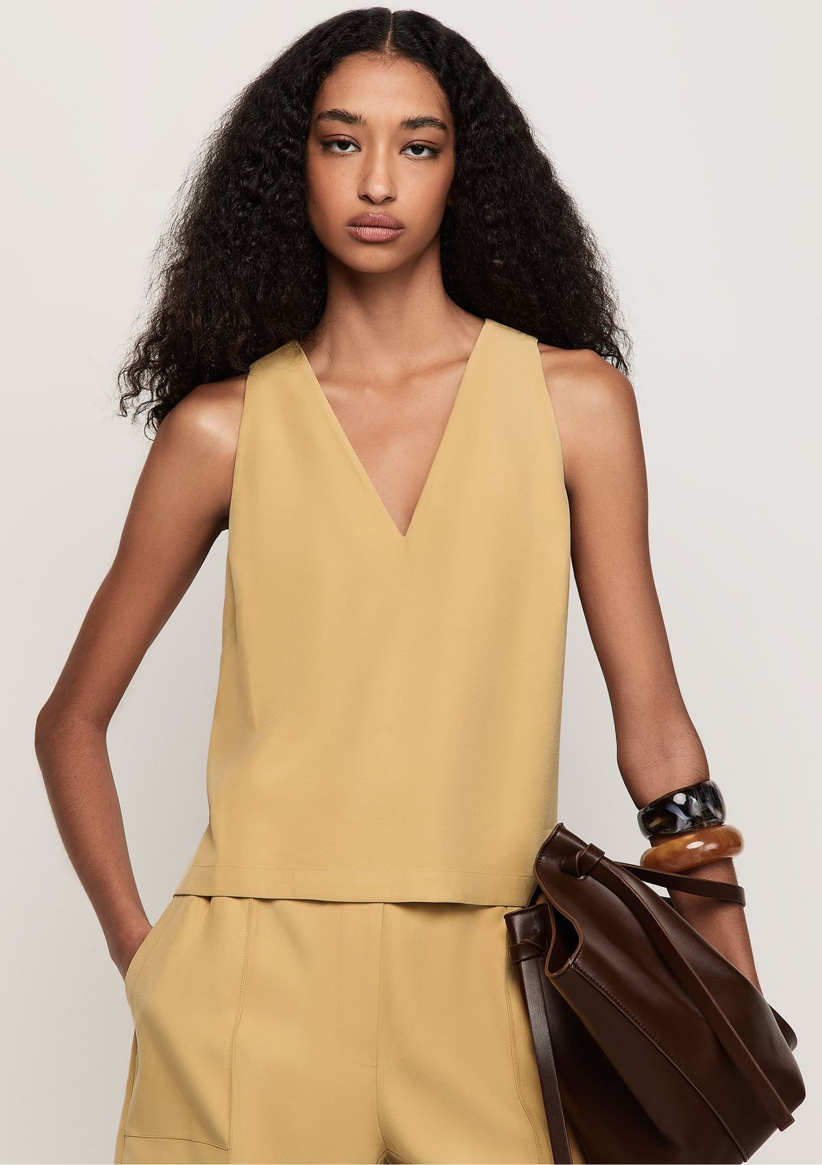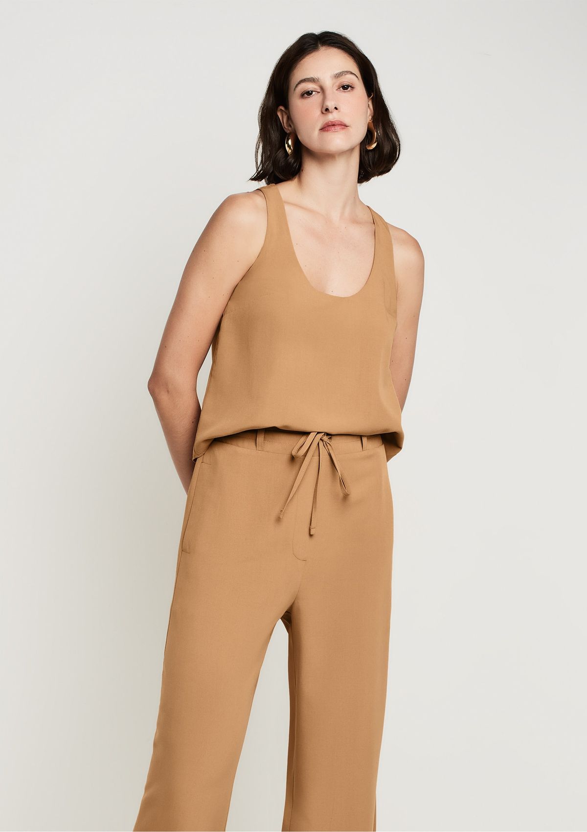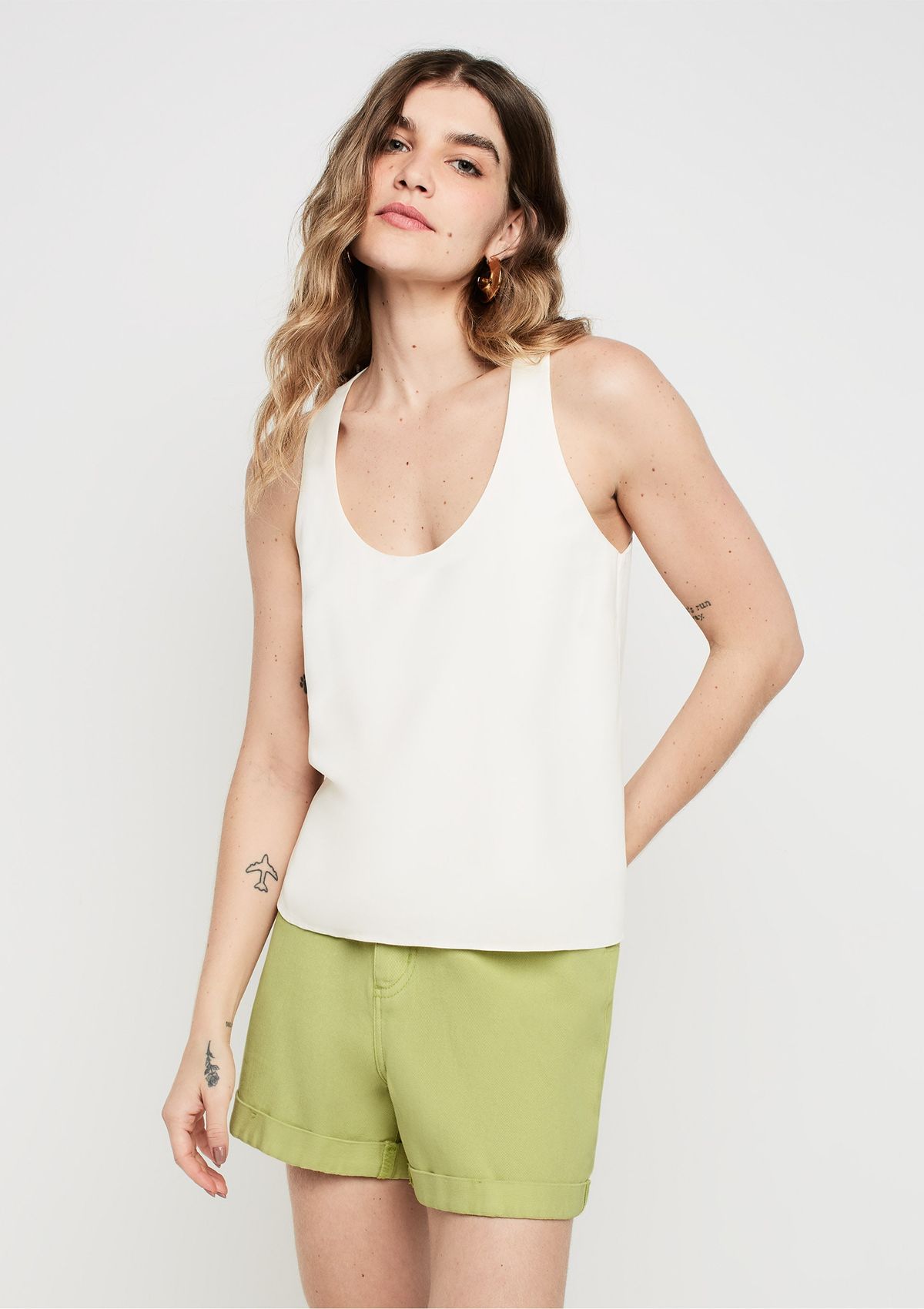 Regata Alongada Decote Redondo Em Viscose Sarjada - Bege