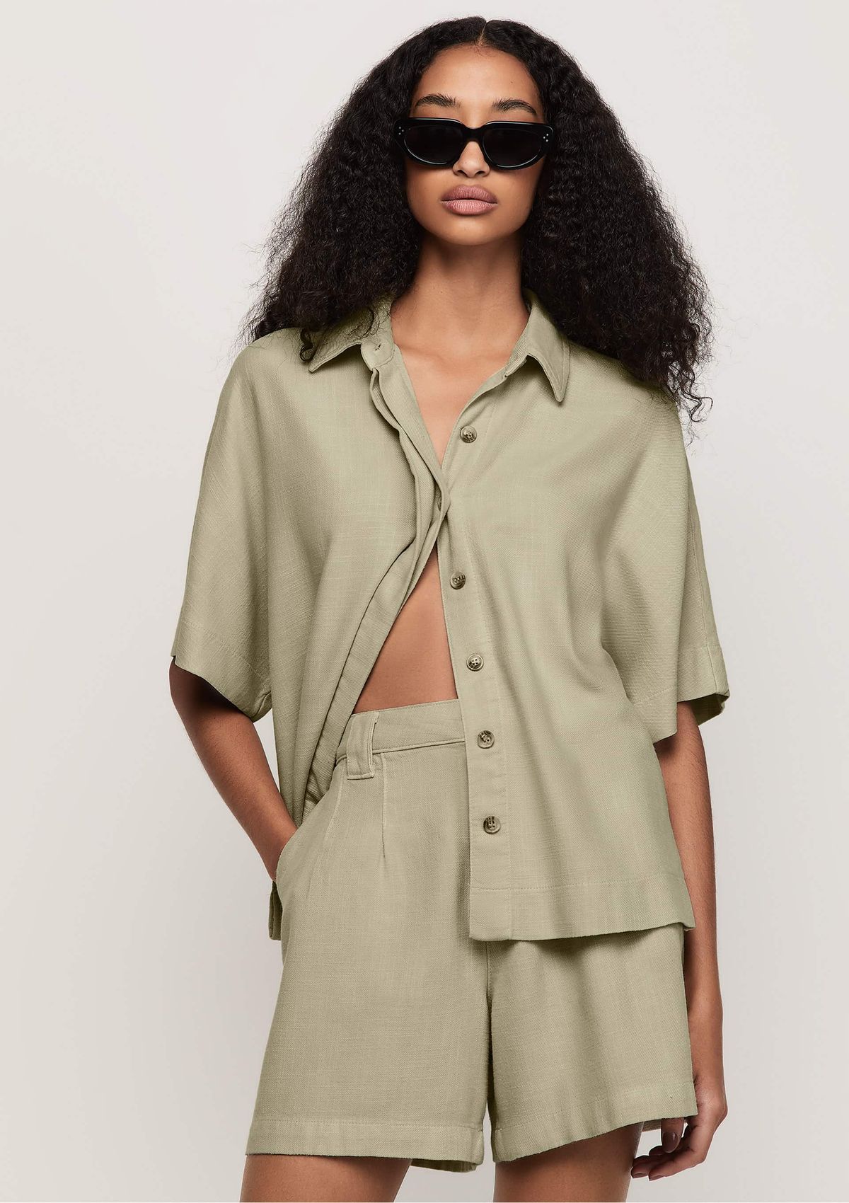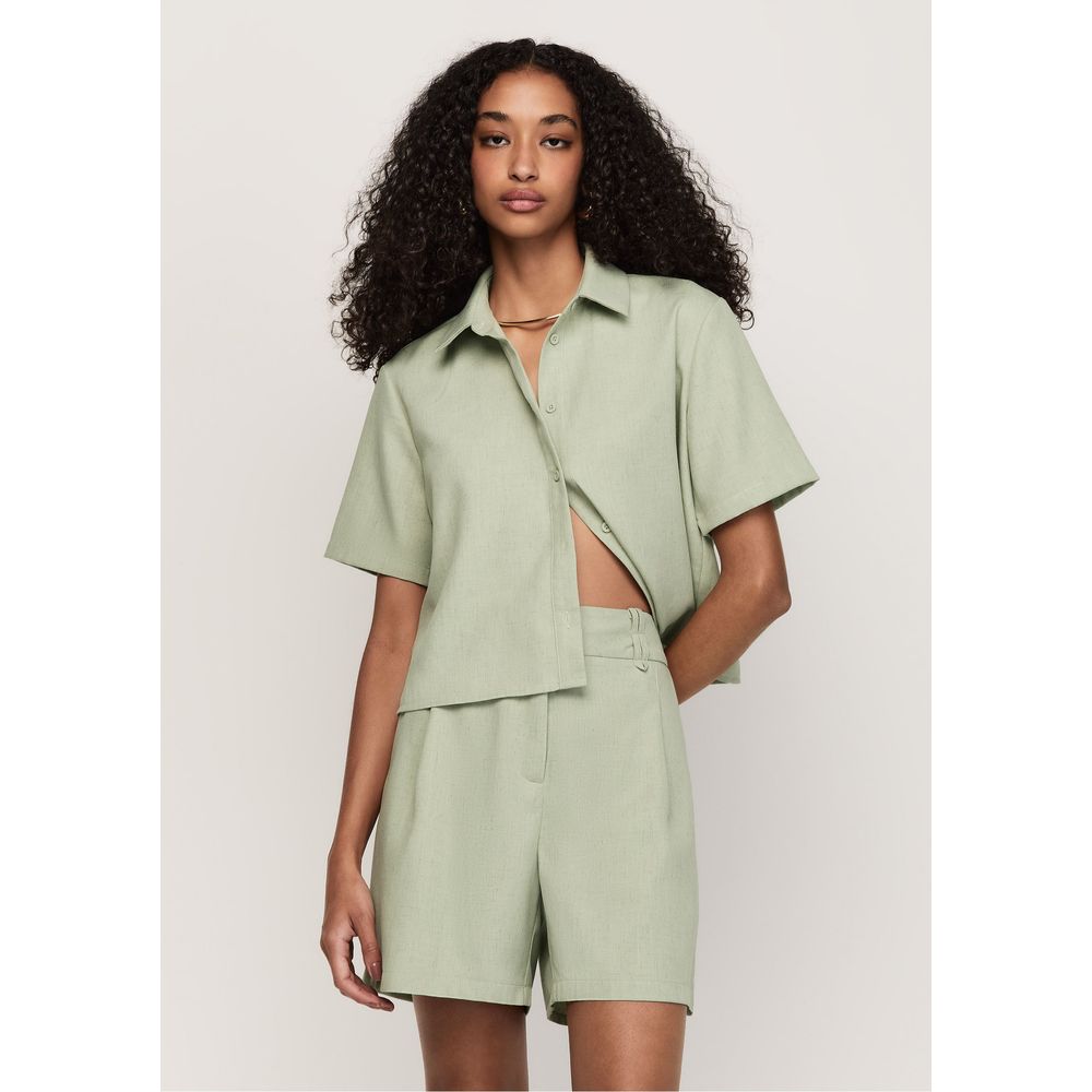 Shorts Evasê Cintura Alta em Linho e Viscose - Off white