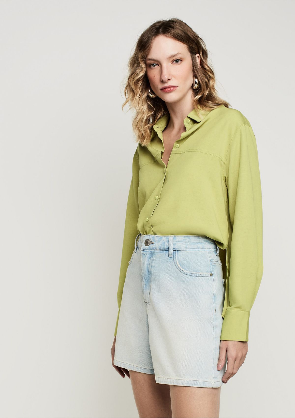 Shorts Reto em Alfaiataria Cintura Alta - Bege