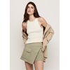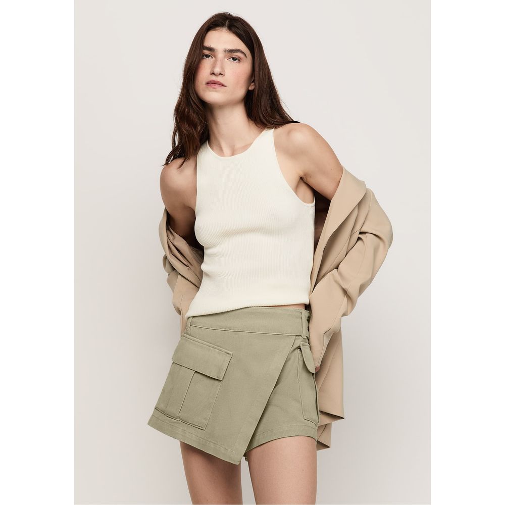 Shorts saia curto confeccionado em tecido sarja 100% algodão, oferecendo um toque de sofisticação e conforto. Com design de frente transpassada e fechamento por dois botões de metal, proporciona um ajuste seguro e um visual moderno. Inclui bolsos cargo aplicados em ambas as laterais, adicionando funcionalidade e estilo. A lavanderia realiza um processo de tingimento que garante cores vibrantes e duráveis.