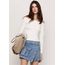 Shorts saia curto feito em tecido jeans 100% algodão sustentável .O jeans e-co2 denim, foca na sustentabilidade da primeira à última etapa da produção.