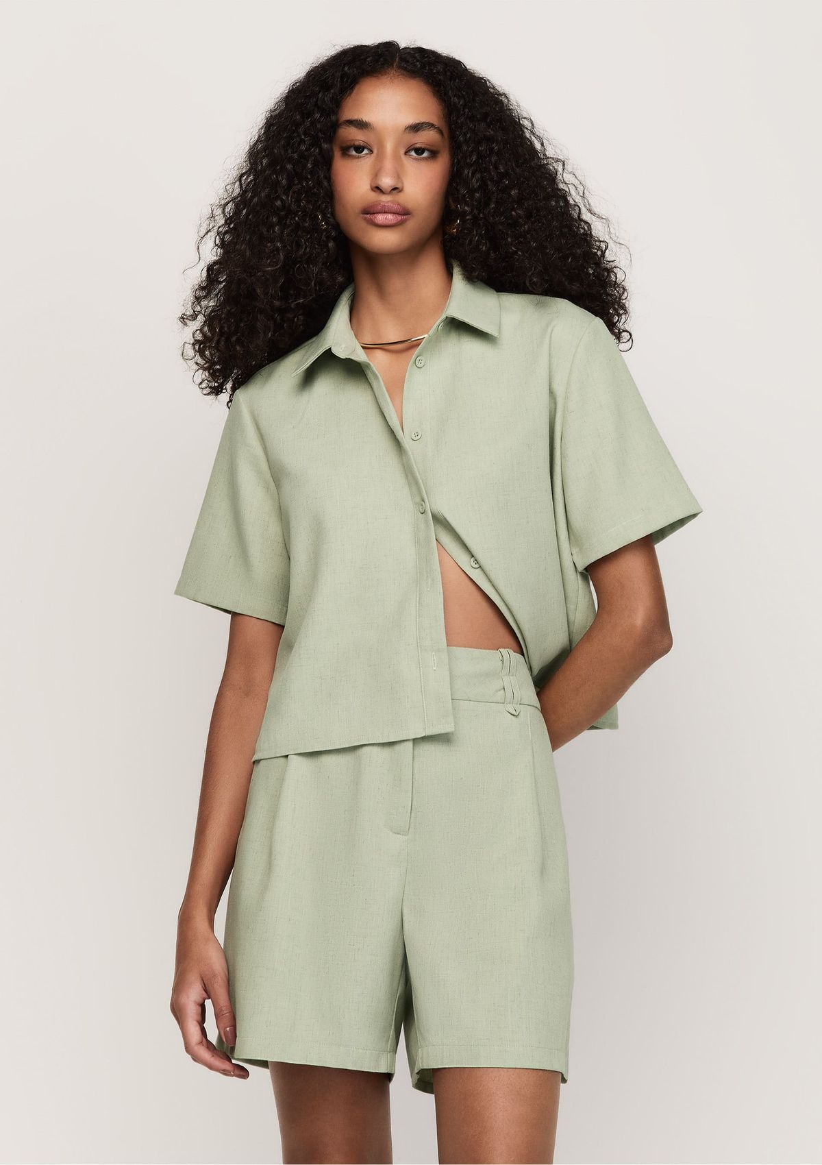 Shorts Reto Texturizado com Cintura Alta - Verde