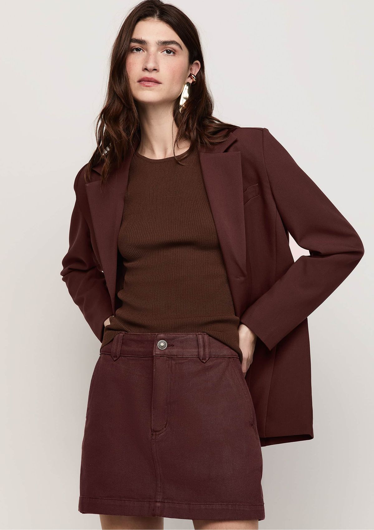 Shorts Sarja Curto Modelagem Reta - Burgundy