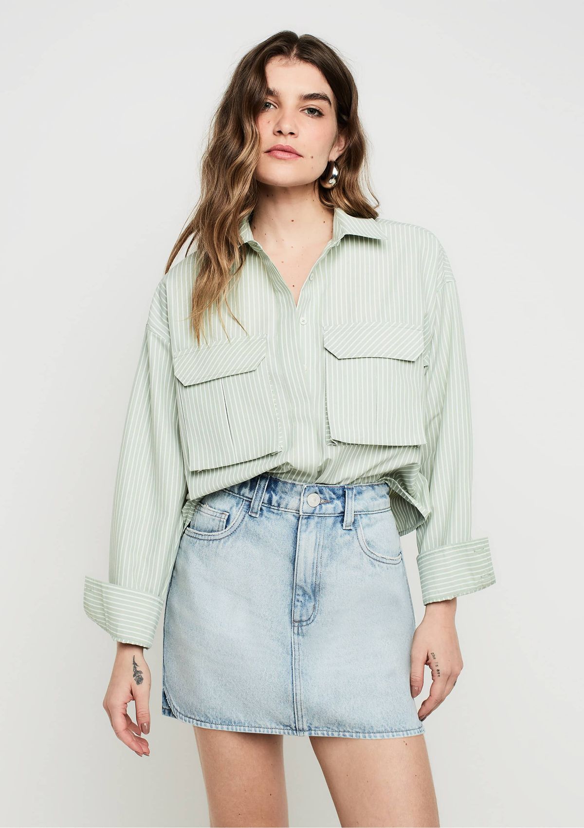 Shorts Saia em Sarja com Frente Transpassada - Cinza