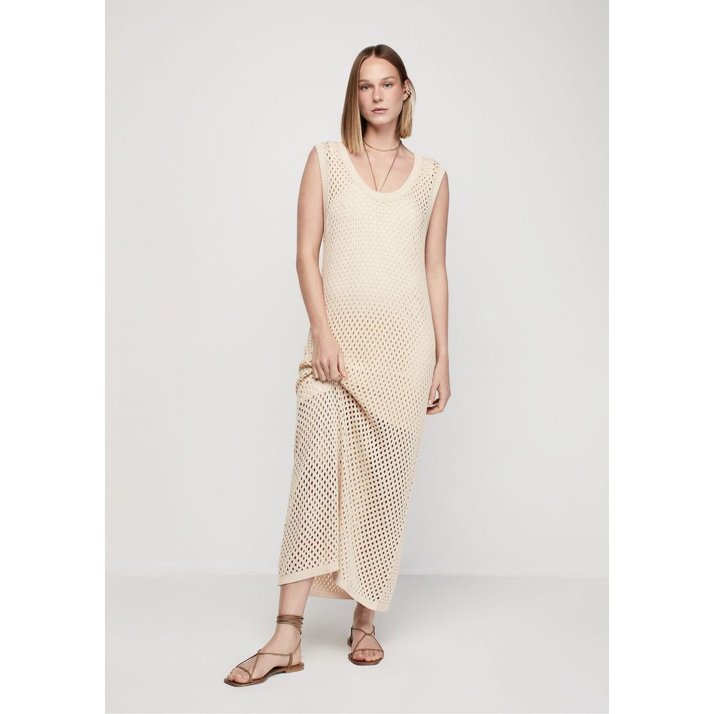 Vestido Midi em Tricô com Alças Largas - Off white